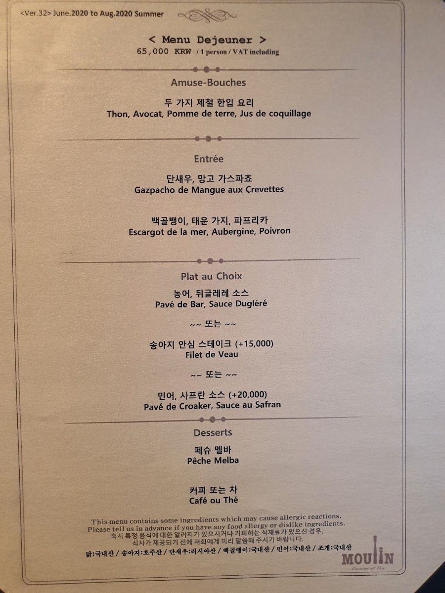 Moulin boasts an impressive selection of high-end wines, including a diverse range of Perrier-Jouët Champagnes, perfect for pairing with their exquisite French dishes. With a course menu priced at 250,000 won (around $210), the experience caters to those seeking a luxurious culinary adventure.
